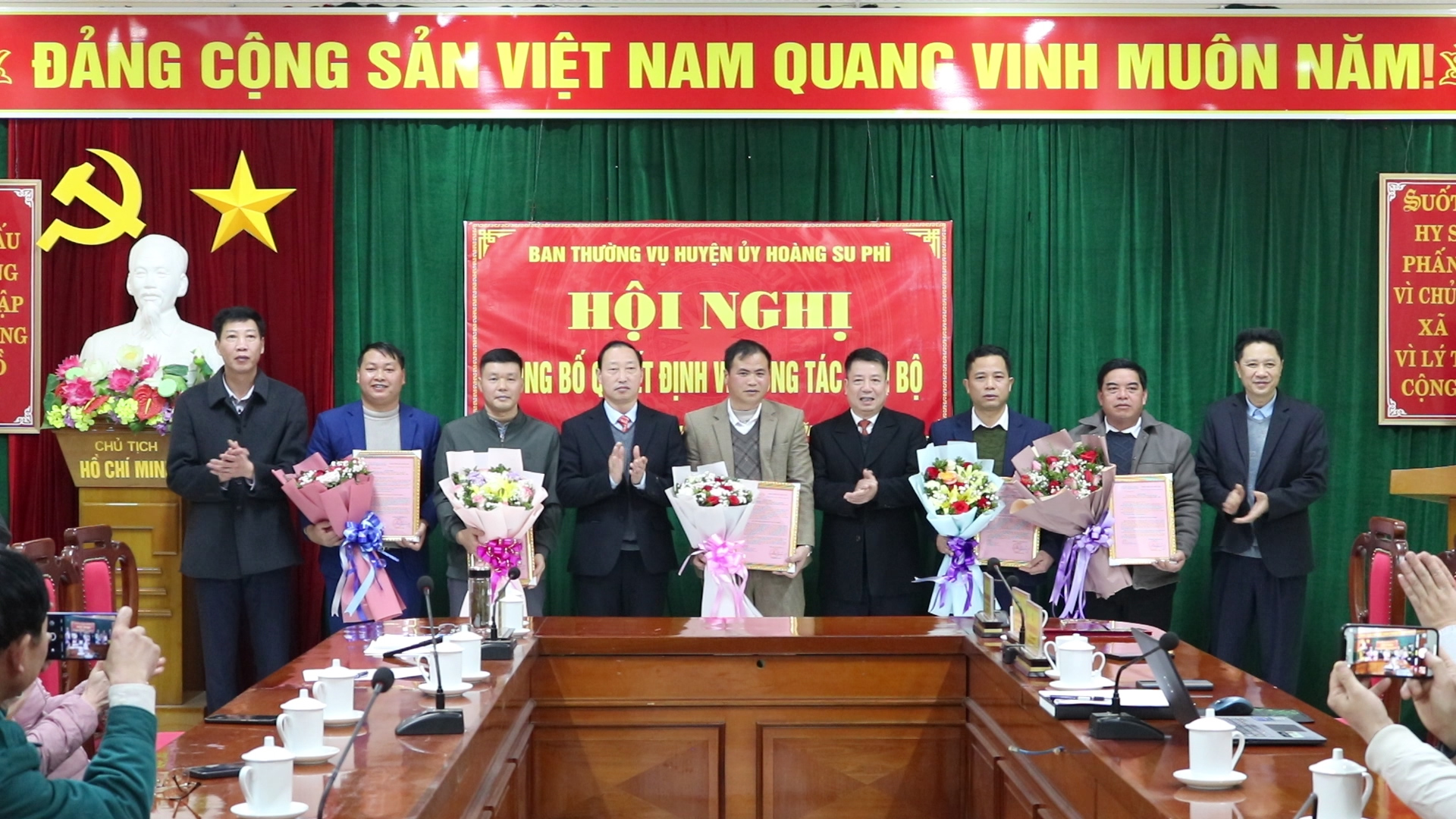 Chiều 24.2, Huyện ủy Hoàng Su Phì tổ chức hội nghị công bố Quyết định về công tác cán bộ. Dự có các đồng chí: Vàng Đình Chiến, Tỉnh ủy viên, Bí thư Huyện ủy; Lù Văn Chung, Phó Bí thư Thường trực Huyện ủy, Chủ tịch HĐND huyện; các đồng chí Ủy viên BTV Huyện ủy, Thường trực HĐND, UBND, UBMTTQ huyện.