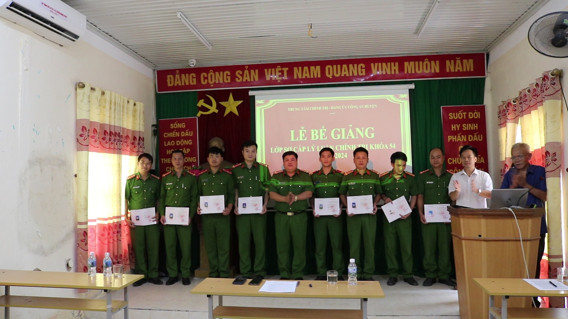 Chiều 17/6, Trung tâm Chính trị huyện Hoàng Su Phì tổ chức Lễ bế giảng lớp Sơ cấp lý luận chính trị khóa 54. Dự lễ bế giảng có lãnh đạo Công an huyện và lãnh đạo Trung tâm Chính trị huyện.