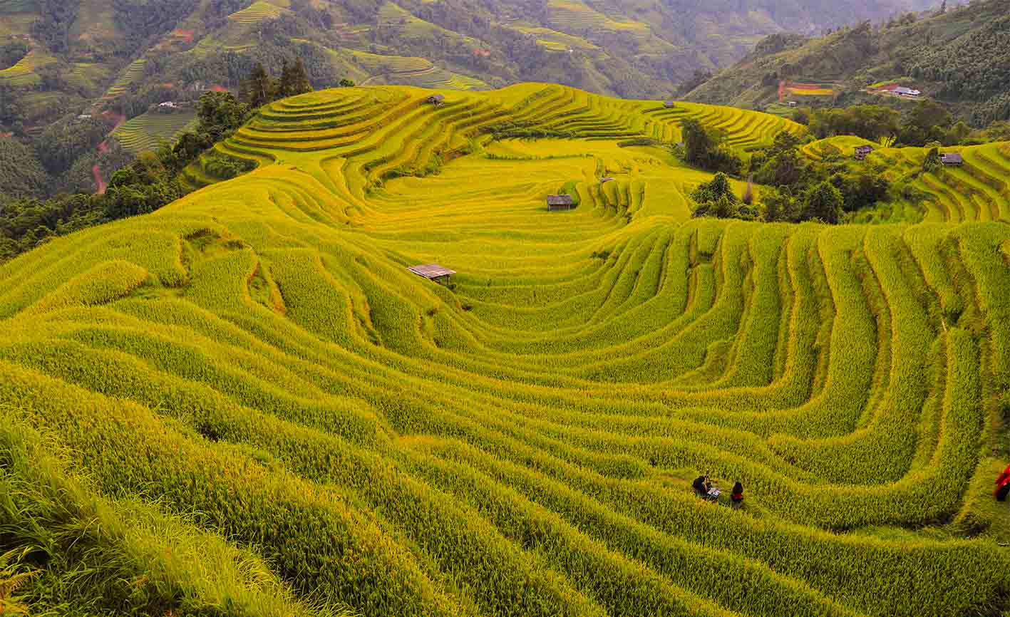 Lúa ở Hoàng Su Phì năm nay chín khá đều, tạo nên những thửa ruộng bậc thang, tràn ngập một màu vàng óng, đây cũng là thời điểm người dân thu hoạch cá chép ruộng, dịch vụ khách du lịch trải nghiệm bắt cá chép ruộng, ngắm ruộng bậc thang đang mang lại thêm nguồn thu cho người nông dân.