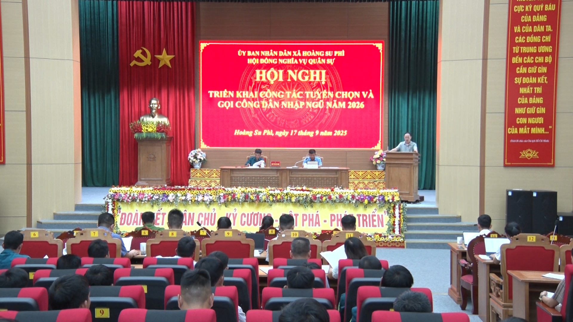 Phát biểu tại hội nghị, đồng chí Vàng Đình Chiến, Bí thư Đảng ủy, Chủ tịch HĐND xã đánh giá cao những kết quả đạt được trong công tác tuyển chọn và gọi công dân nhập ngũ năm 2026, đồng thời yêu cầu Hội đồng NVQS xã và Ban Chỉ huy Quân sự xã là cơ quan tham mưu cho Đảng ủy, UBND xã tăng cường công tác phối hợp tuyên truyền, giáo dục sâu rộng trong Nhân dân Luật Nghĩa vụ Quân sự, Luật Công an nhân dân; thực hiện nghiêm quy trình tuyển chọn, gọi công dân nhập ngũ theo quy định; chủ động phối hợp chặt chẽ với các ngành, cơ quan, đơn vị trong triển khai nhiệm vụ năm 2026, nhất là trong điều kiện thực hiện mô hình chính quyền 2 cấp hiện nay, yêu cầu về sự phối hợp liên thông, chặt chẽ giữa cấp tỉnh và xã ngày càng cao../