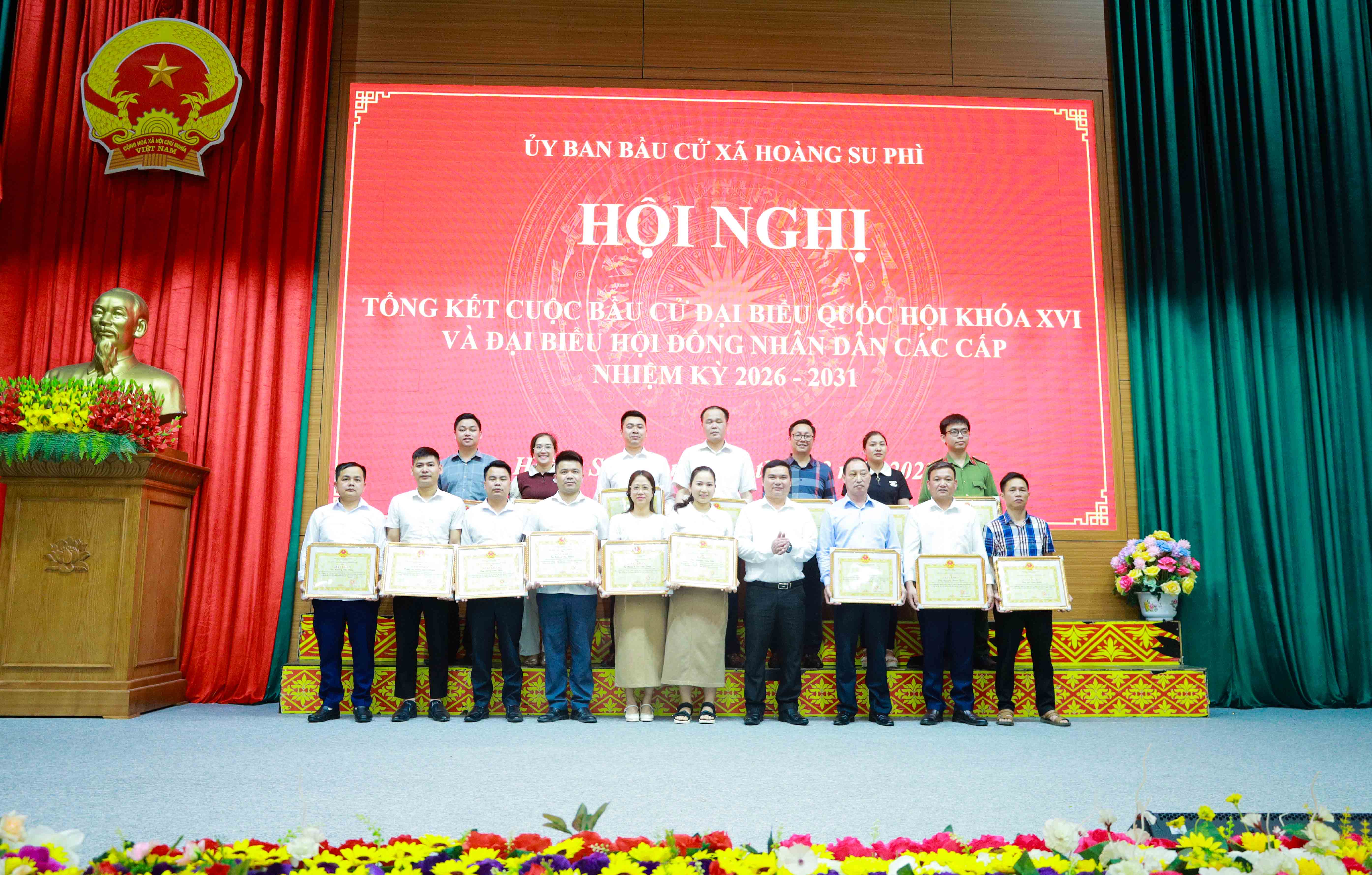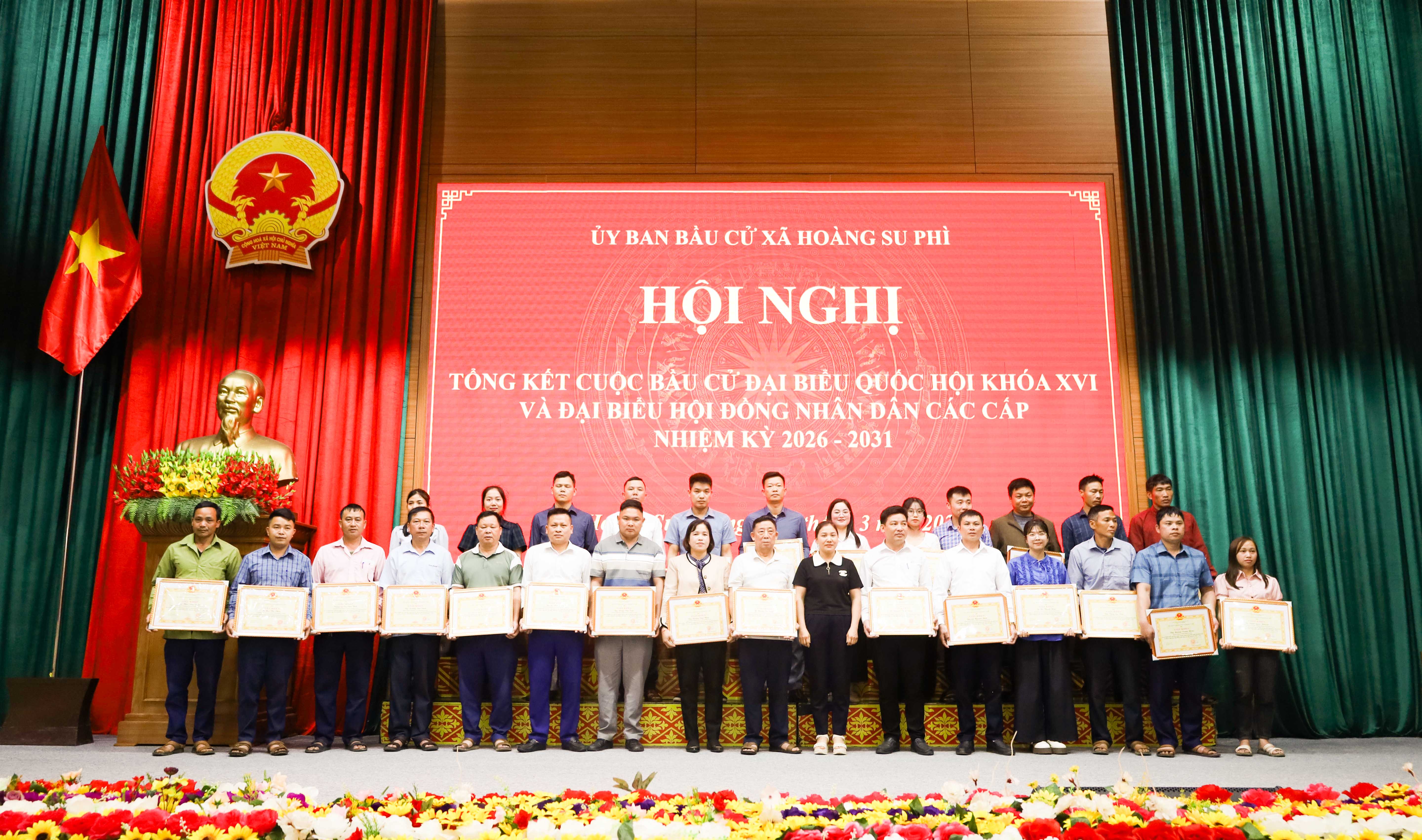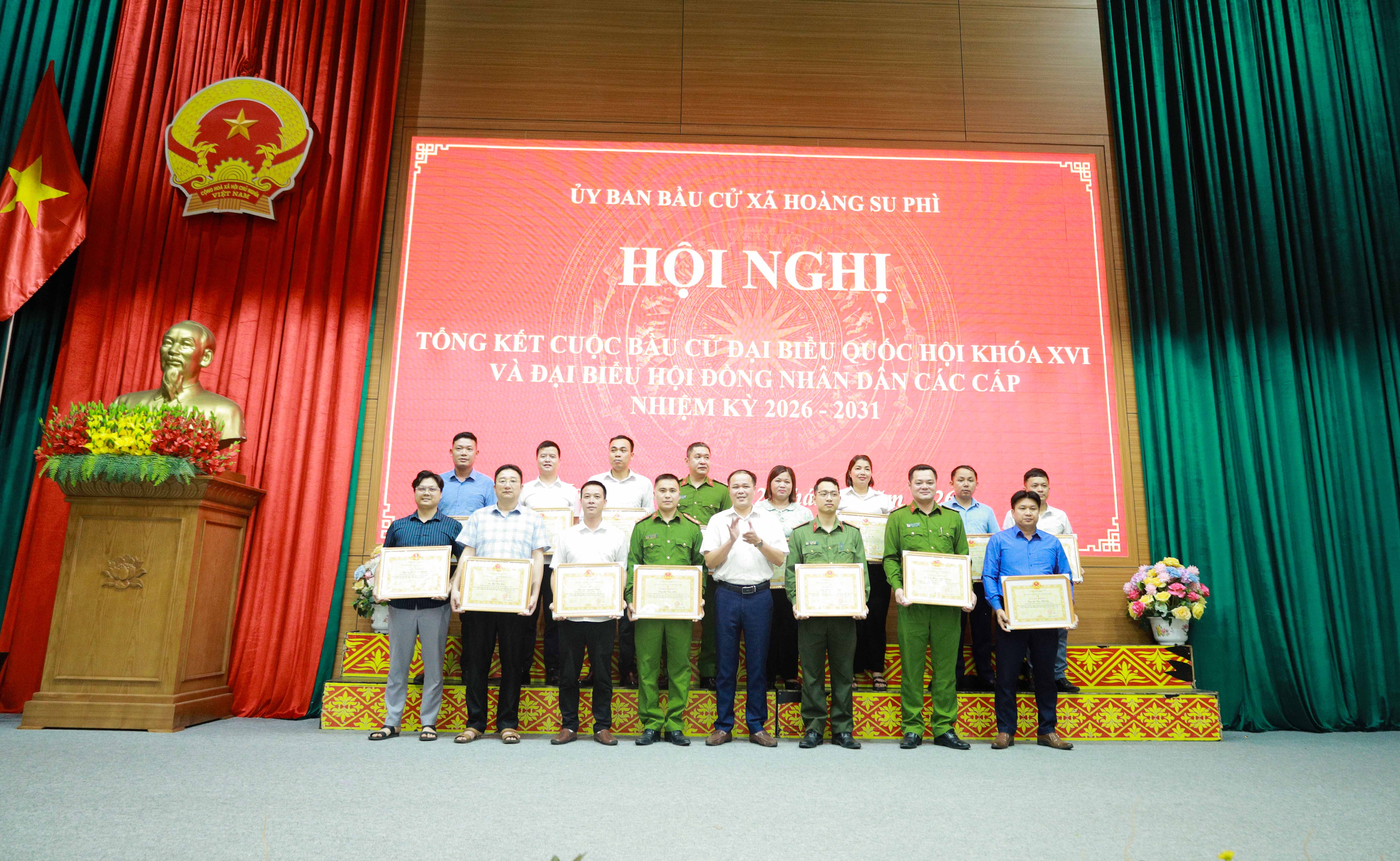 Nhân dịp này, UBND xã Hoàng Su Phì đã tặng Giấy khen cho 18 tập thể, 82 cá nhân có thành tích tiêu biểu trong công tác bầu cử đại biểu Quốc hội khóa XVI và đại biểu HĐND các cấp nhiệm kỳ 2026–2031. Đây là sự ghi nhận, động viên kịp thời, góp phần lan tỏa tinh thần trách nhiệm, nâng cao hiệu quả thực hiện nhiệm vụ chính trị tại địa phương trong giai đoạn tiếp theo.
